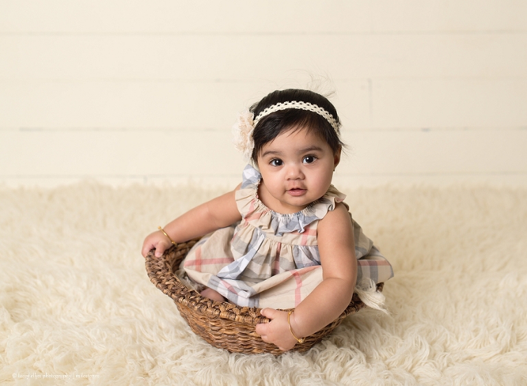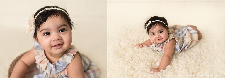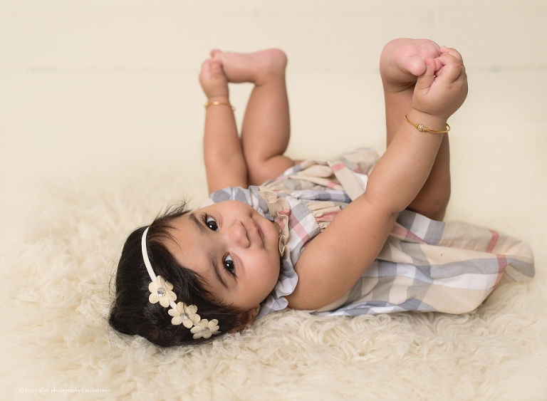 I loved seeing this little sweetheart again! She was such a good newborn for me, I knew she would be just as wonderful for her 6 month session. I am loving her dress! What a stylish little babe!