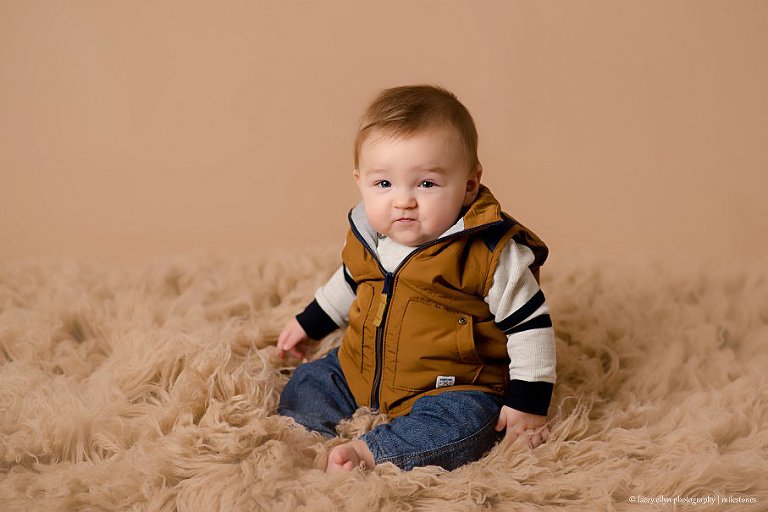 Baby James was the cutest little nugget at his newborn session! I couldn’t want to see how big he had gotten for his next milestone session! One of my favorite parts of this job I love so much is watching babies grow through their first year! We met at my studio in Hawthorn Woods, IL and has so much fun!