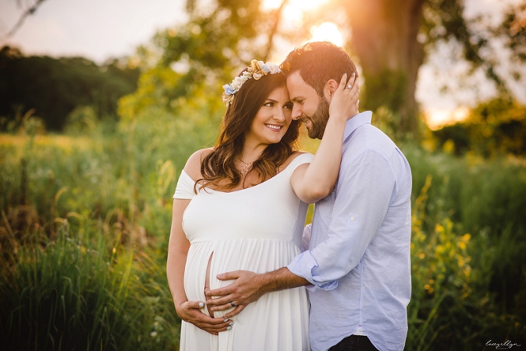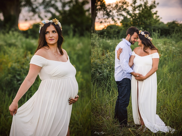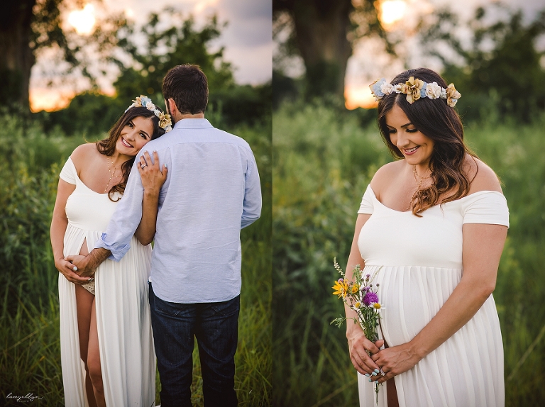 The most lovely couple awaiting the arrival of their little boy…truly a very special time in the lives of these parents-to-be! Rain was threatening the evening of our session but the sun came out, followed by the most amazing sky. (Followed by rain on the drive home!) This couple displayed so much love for one another. Their little guy is going to be so lucky to have them as parents! How gorgeous does she look in this amazing gown and floral crown by Sew Trendy?