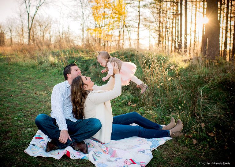 It was such a joy meeting this sweet family! Their little baby girl was one of the best babies ever and looked so adorable, especially with that flower crown and those bright blue eyes! We lucked out with a gorgeous fall evening and the most beautiful light! Here are some of my favorites from their session in Wauconda, IL!