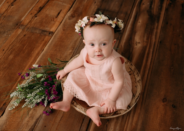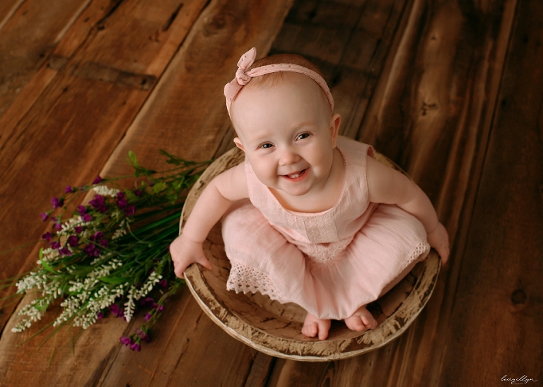 This sweet girl just turned one! I had the pleasure of meeting her and her sweet parents in my Hawthorn Woods, IL studio. Just look at this adorable face! And that flower crown (Made by yours truly) looks amazing on her! Here are a few of my favorites from her one year session!
