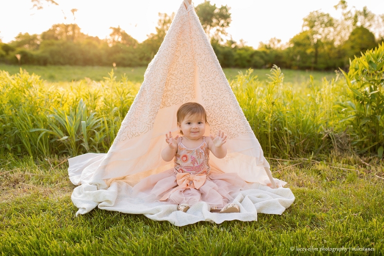 This little cutie came dressed in the most adorable outfits! She was one of the most relaxed one year olds I’ve ever met; she just hung out and smiled and let me take her photos all the while being as cute as can be! We had the most gorgeous evening and sunset. Everything was perfect for this little cutie’s one year portraits!